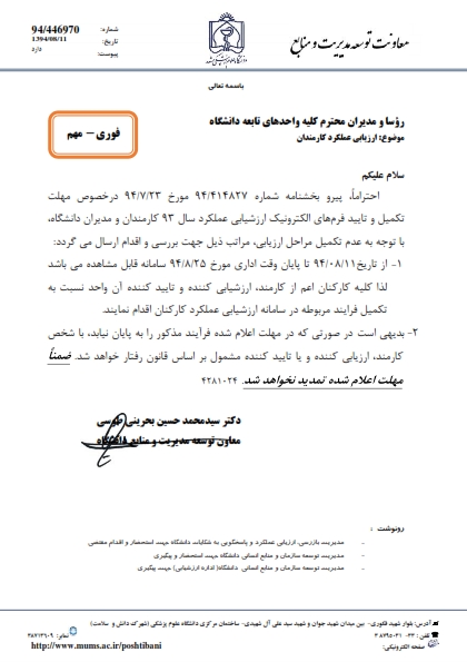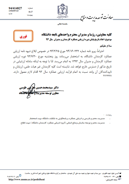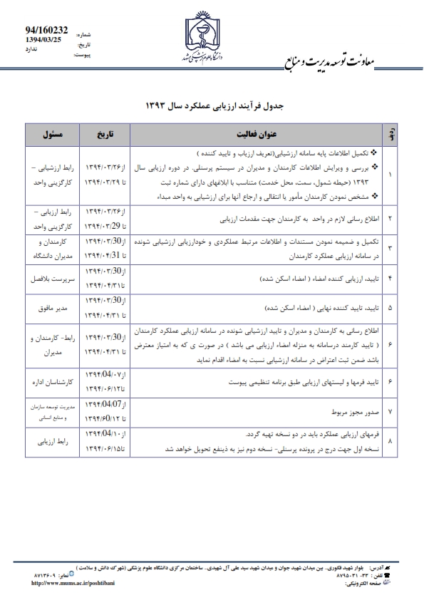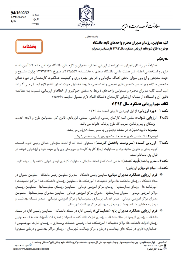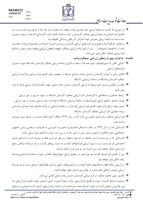 04 آذر 1394 بازدید: 2407 امتیاز: ( 0 Rating ) مقررات و مستندات ارزیابی عملکرد کارمندان و مدیران سال 93 امتیاز کاربران لطفا رای دهید رای 1 رای 2 رای 3 رای 4 رای 5